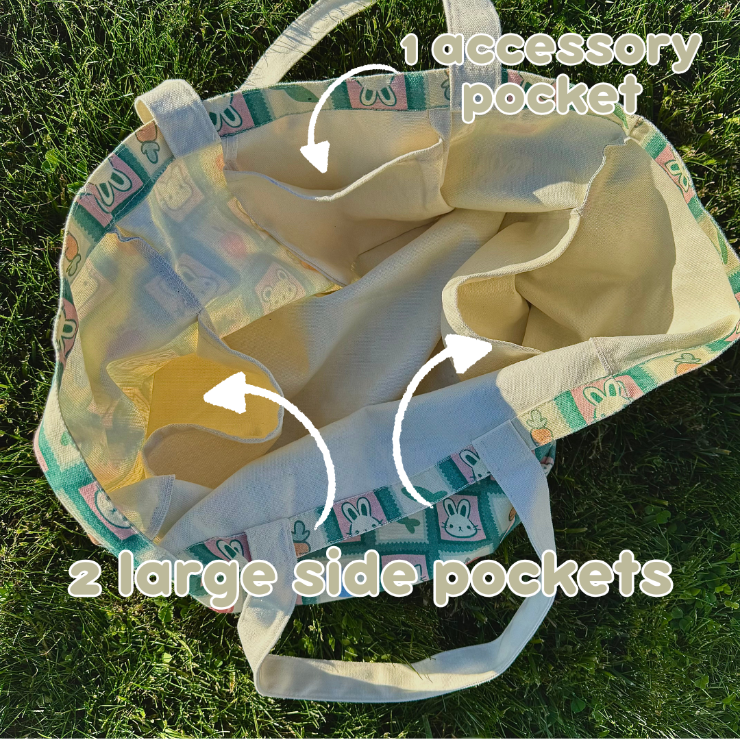• Our tote bag was inspired by cute animal doodles and flowers with a stamp pattern! Perfect for carrying groceries or anything on the go! Includes canvas tote bag includes (1) small accessory pocket and (2) larger pockets on sides. Bag dimensions: 15.75 in (L) x 9.84 in (W) x 11.8 in (H) Strap/handle dimensions: 1.38 inches thick x 23.6 inches long. Washable; PLEASE NOTE there...